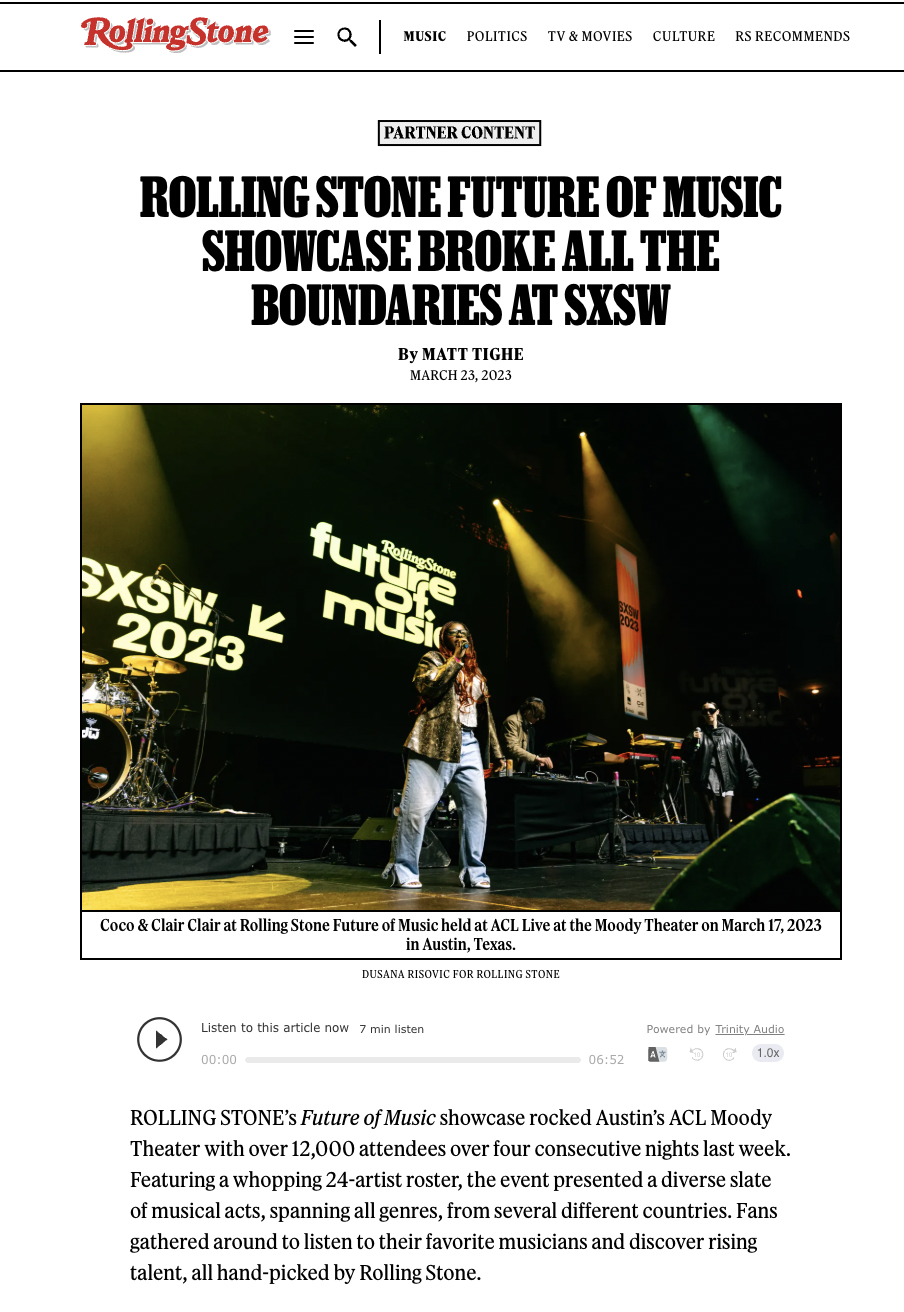 LAUNCH AND SCALE ROLLING STONE’S FLAGSHIP 4-DAY STAGE AT SXSW, ALIGNING EDITORIAL AND CROSS- FUNCTIONAL TEAMS TO DELIVER A TRUE 360 BRAND EFFORT COMBINING EDITORIAL IP, DIGITAL COVERS, EVENTS, SOCIALS AND VIDEO.